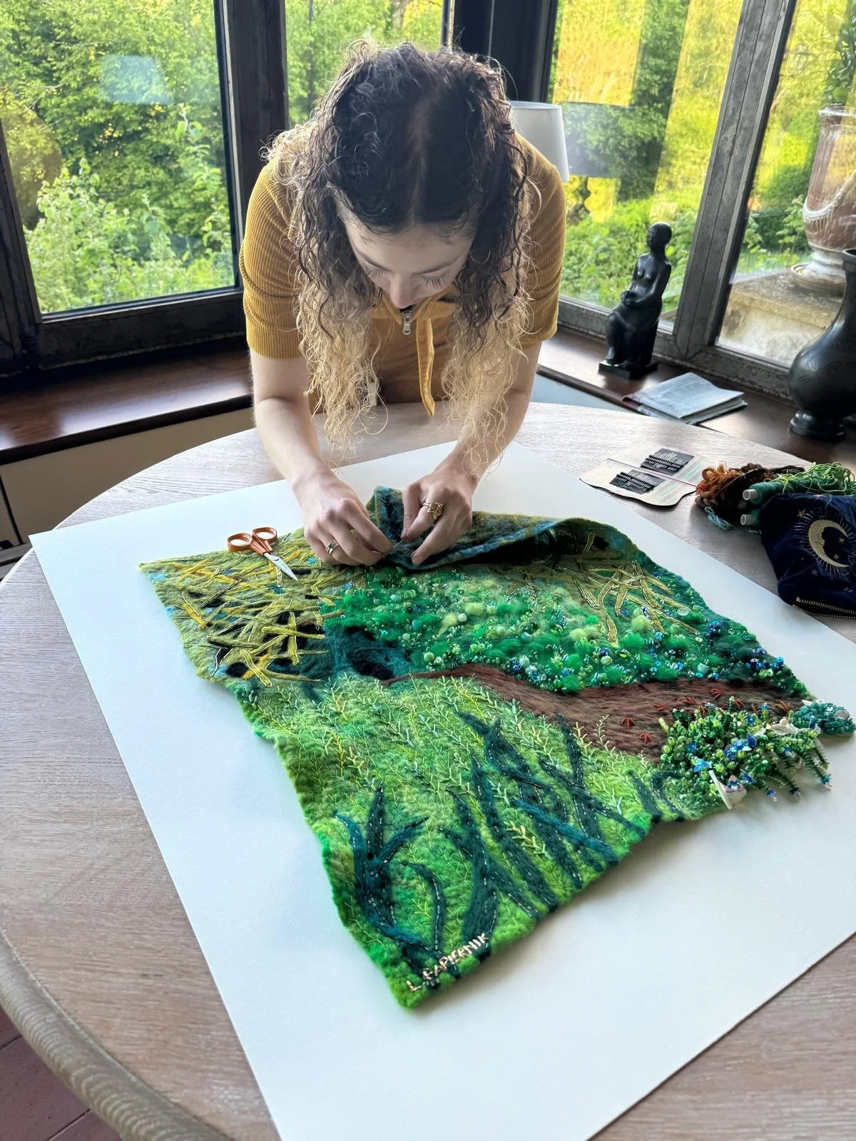 Les Rencontres de St ceneri is a yearly exhibition that takes place in the renowned artistic village of St Ceneri in France. Livia’s was selected to exhibit her embroidered works. The artists are invited to exhibit and take over the homes of local villagers. This is a highly reputable exhibition, brining over 2000 visitors the the village every year.