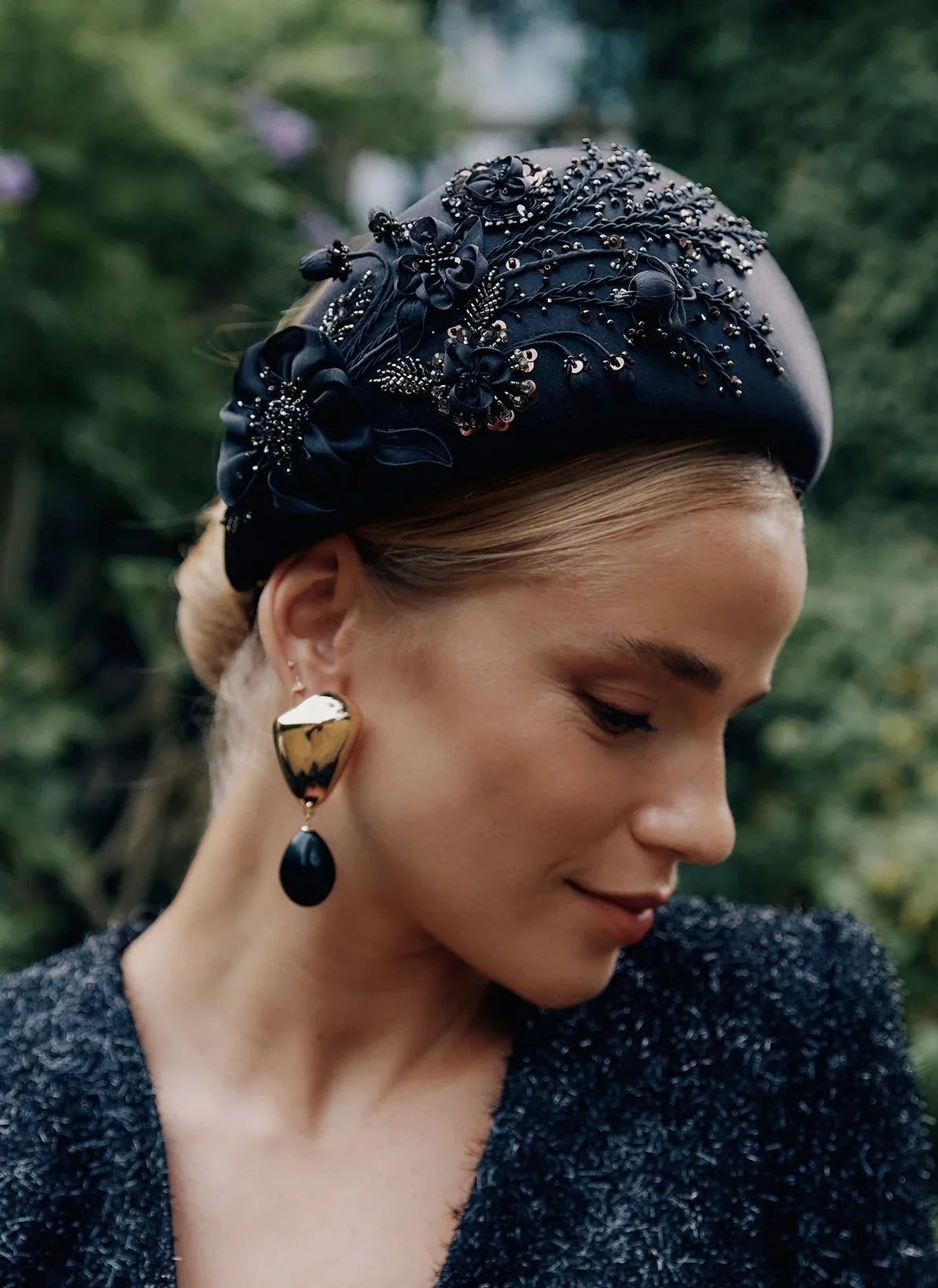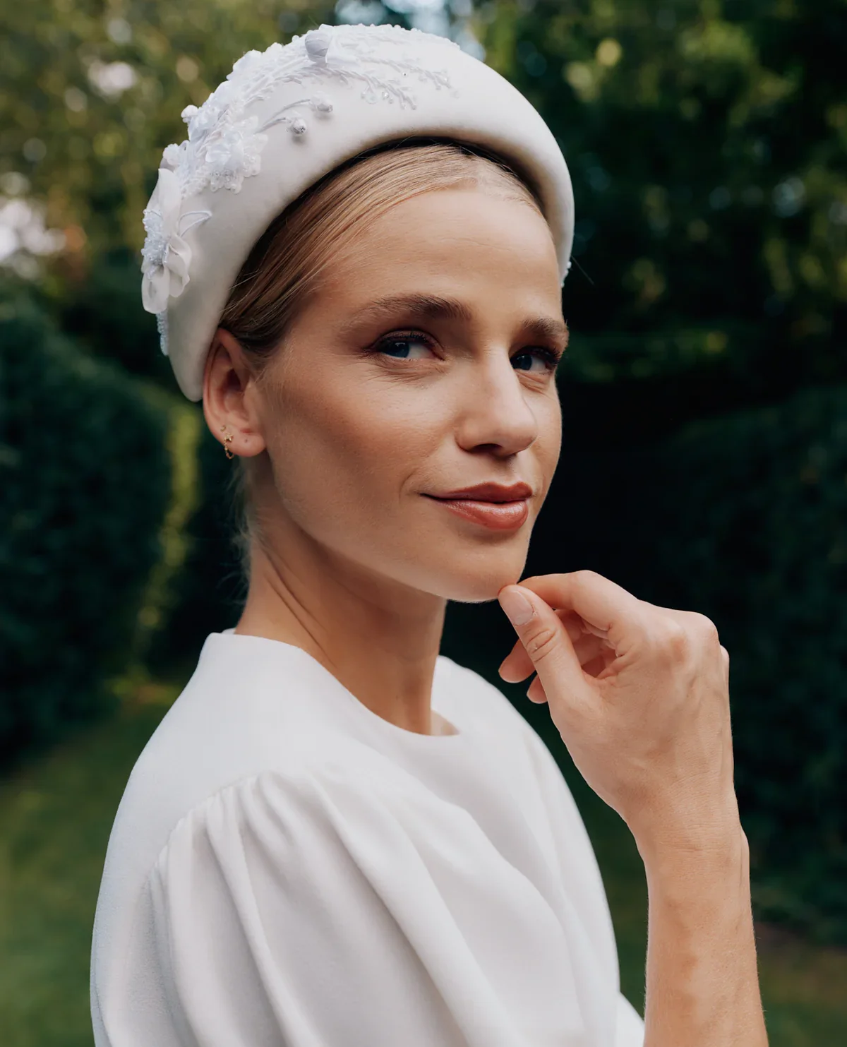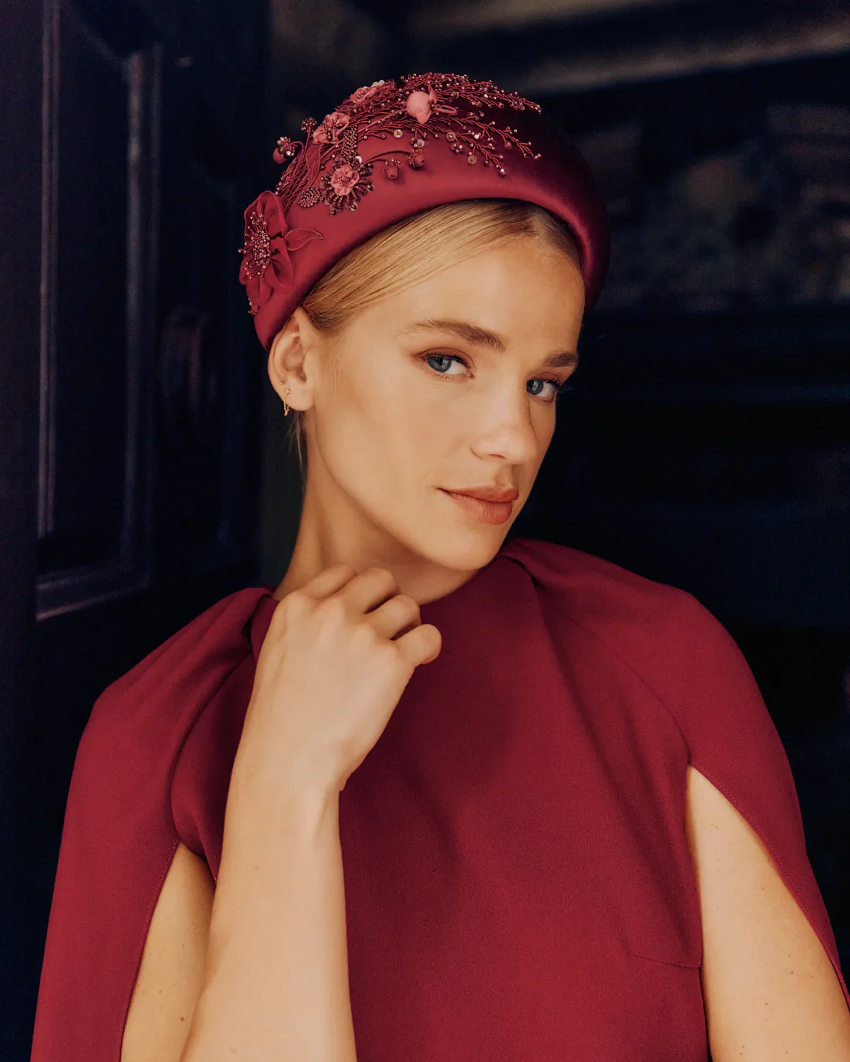 Livia Papiernik collaborated with the Lock & Co Hatters on a bespoke embroidery design and hand crafted collection of headbands for the AW 2024 Women’s Collection.